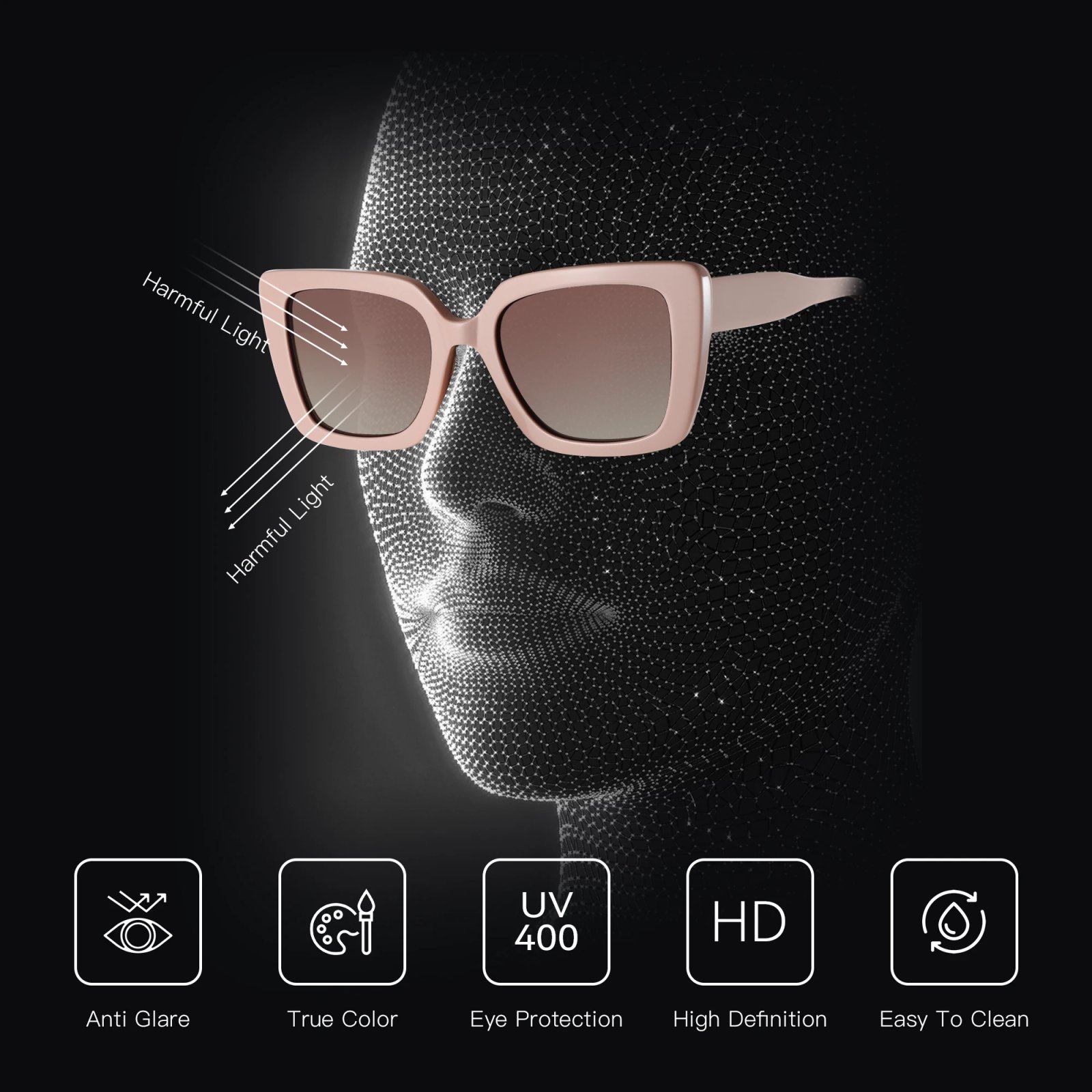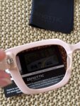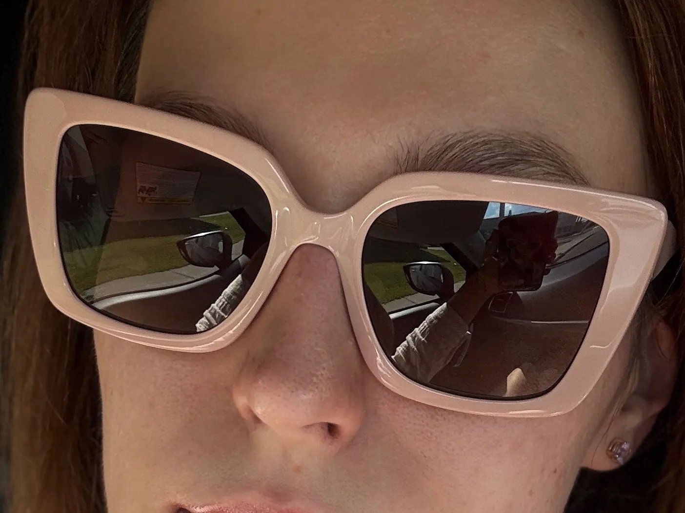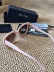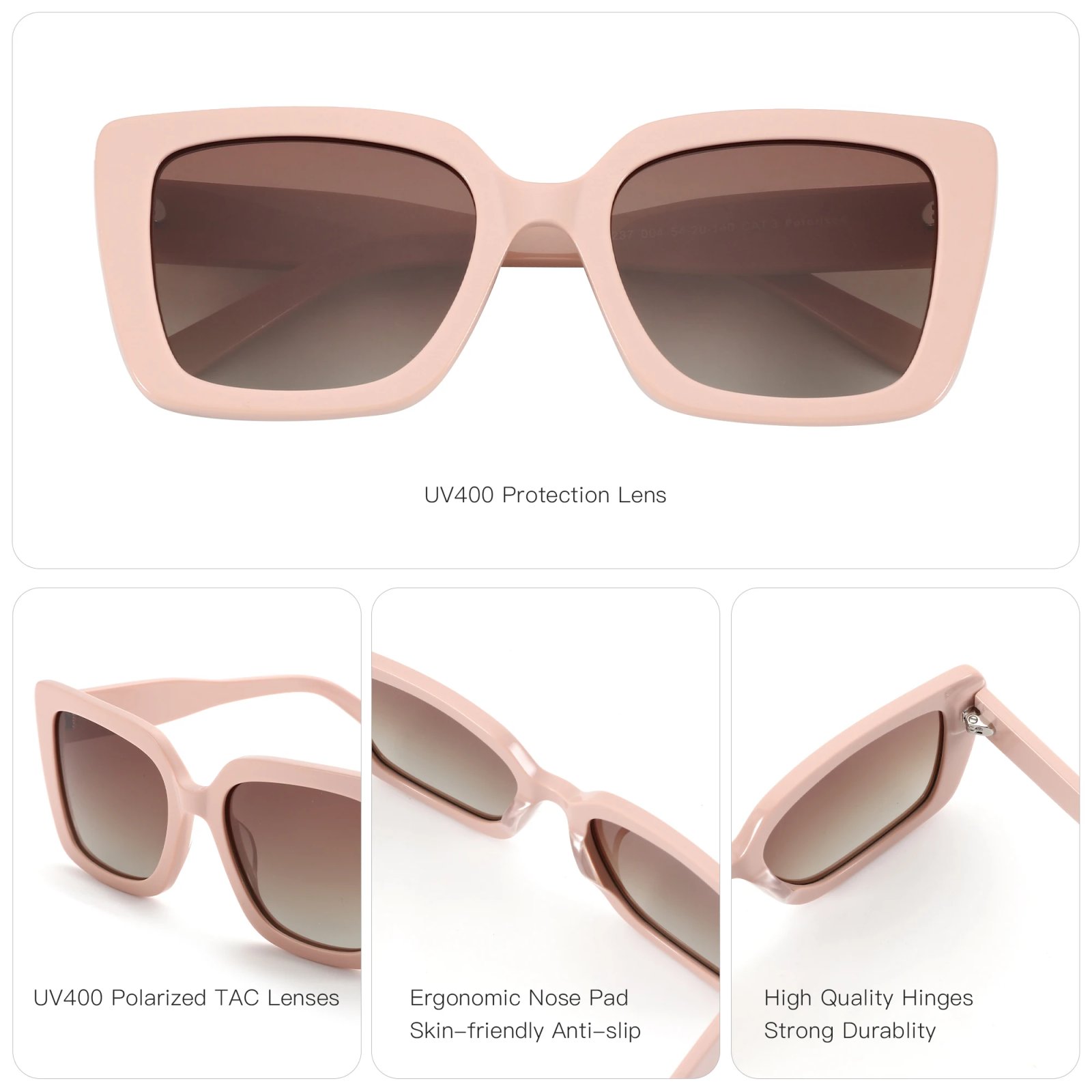 My second pair from the brand. This model is cool, fits super comfortably. The size matches our expectations and imagination. The material is thick glossy plastic in beige-pink color. The temples are not tight; when folded, they fall on the frame, not the lens. There are no logos or inscriptions. The set included a fabric case, a cloth, a card for checking the coating, and a business card. The lenses are polarized, gradient. The packaging wasn’t entirely good; my box arrived wrinkled and torn. The contents are fine, though. I recommend this model 👍🏻