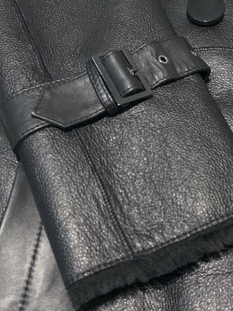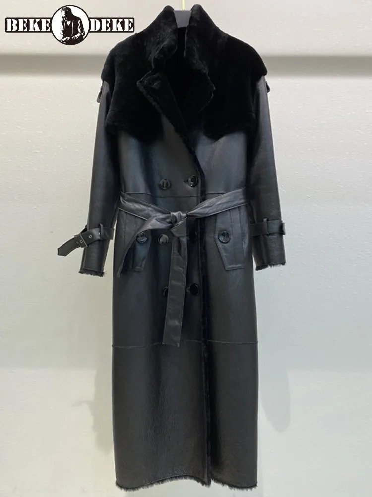 Luxury Women Long Real Leather Coat