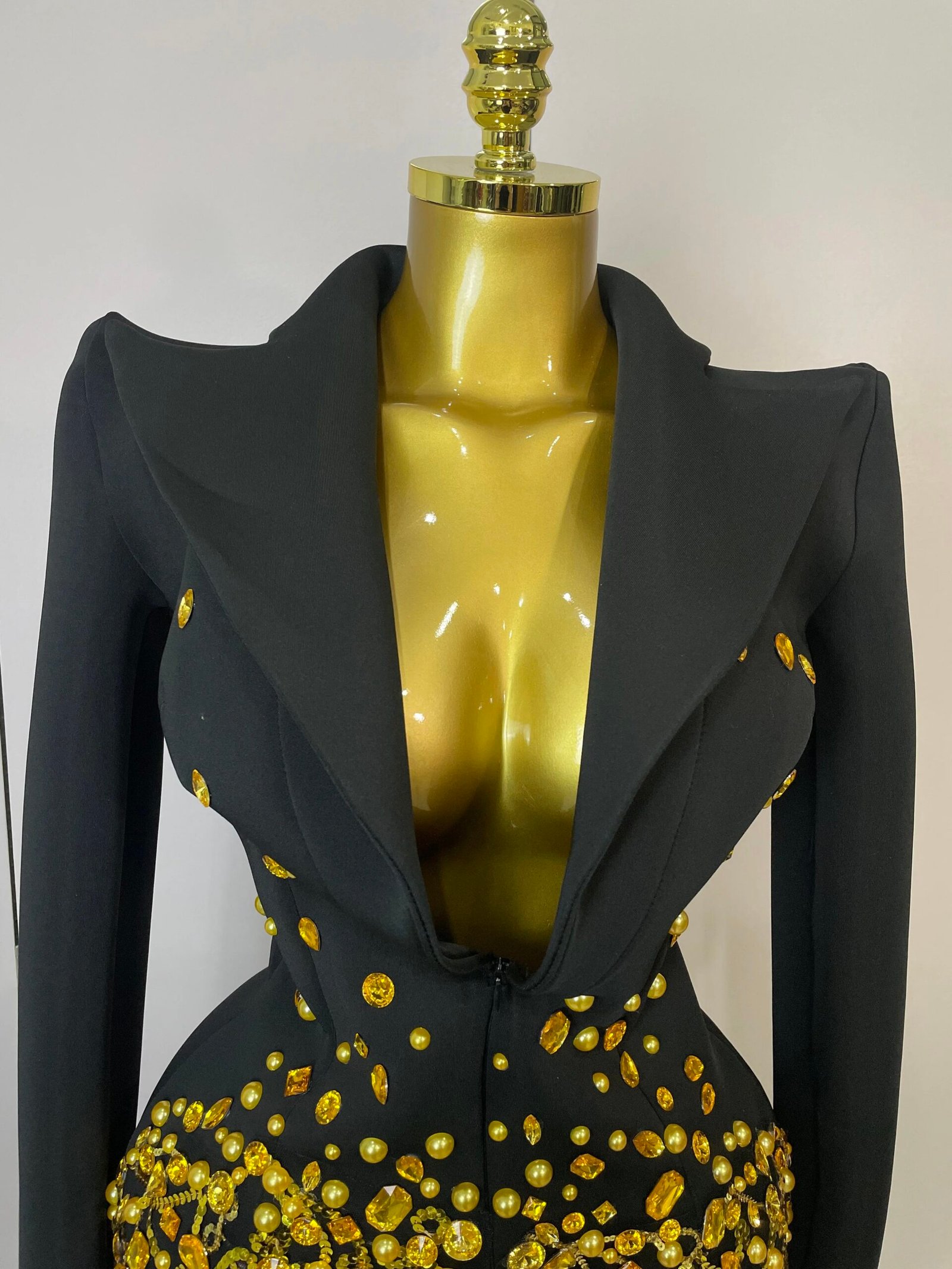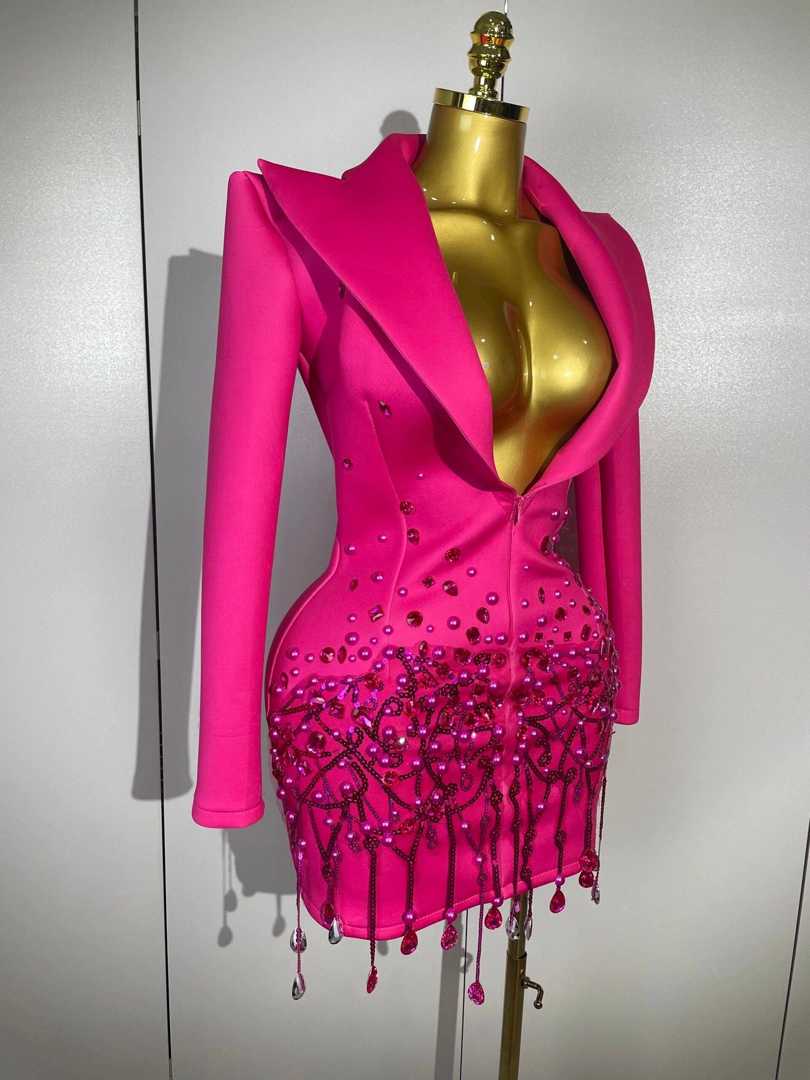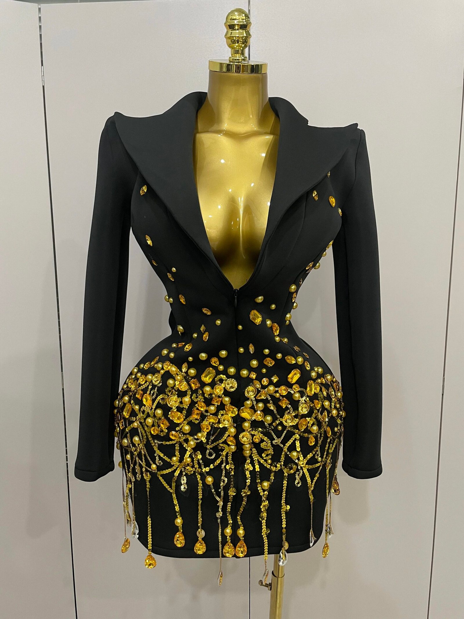 Sparkly Crystal Chains Pearls Long Sleeve Mini Dress