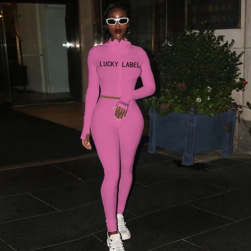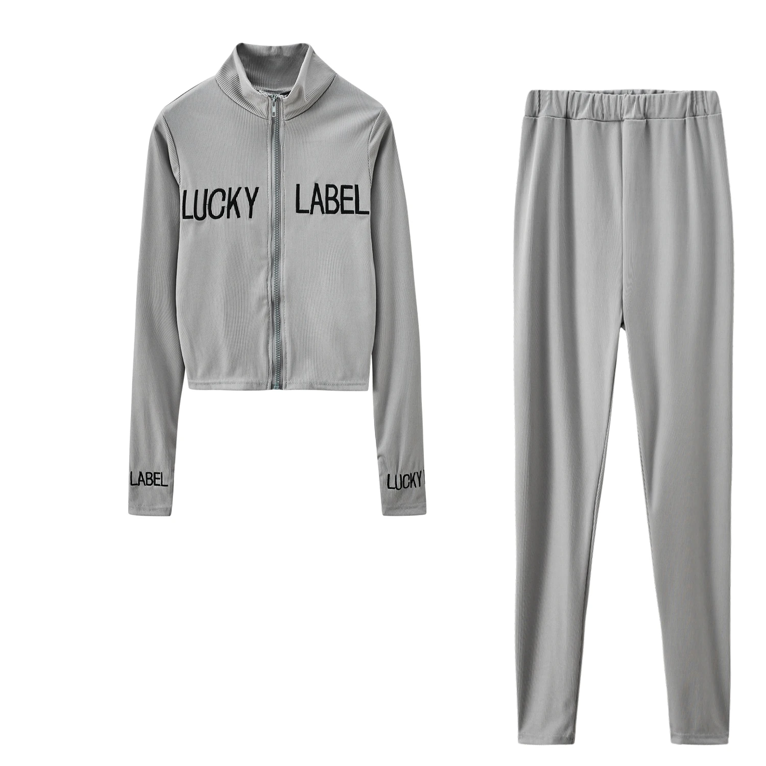 Women’s High-Necked Embroidered Lettered Zipper Sport Suit 2-Piece